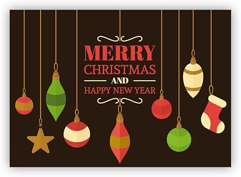 10 Stück Edle, braune englische Weihnachtskarte mit Retro Weihnachtsbaum Schmuck: Merry Christmas and happy new year • weihnachtliches Grußkarten Set mit Umschlägen zu Weihnachten: Amazon.de: Bürobedarf & Schreibwaren